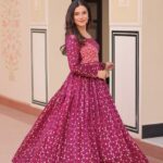 Women’s Festive Berry Purple Printed Anarkali Gown with Intricate Zari Work & Embellished Yoke – Perfect for Traditional & Celebration Wear